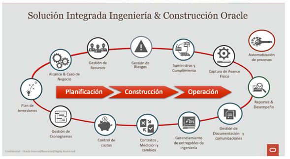 En la construcción cada decisión marca la diferencia, por lo que requieren que sean tomadas con precaución y confianza. Los propietarios y los equipos de entrega buscan cada vez más el software de construcción que los ayude a trabajar de manera más inteligente y mejor conectados a lo largo de los ciclos de vida del proyecto y los activos. Es por ello, que la plataforma Oracle Smart brinda un soporte transversal durante todo el proceso de planificación temprana, constructivo y de operación en activos bienes o servicio, siendo así lo requiere la organización.